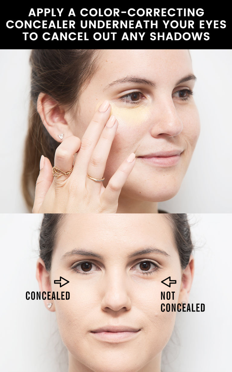 - إذا كنت تُعانين من الهالات السوداء تحت العينين ضاعفي كمية الكونسيلر. قومي بوضع كمية مضاعفة من الكونسيلر تحت عينيك قبل تطبيق المكياج الأساسي الذي تقومين به بشكل يومي.