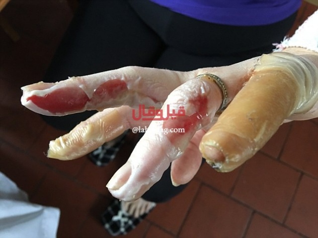 وقعت امرأة بريطانية ضحية انفجار لوح متحرك hoverboard ما ادى لإصابتها بحروق مروعة في يدها.