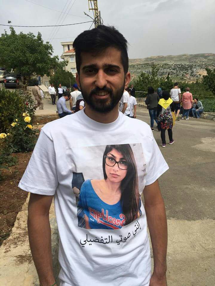 انتشر على مواقع التواصل الاجتماعي صورة لشاب يرتدي قميصاً أبيض عليه صورة ميا خليفة.