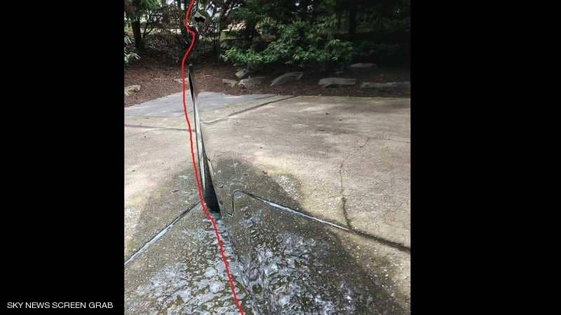 النظرة الأولى للصورة لا يظهر فيها إلا بعض الأشجار والأحجار ومياه على الأسفلت.