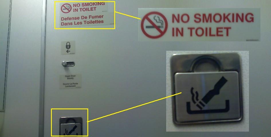 مطفأة السجائر ليست مخفية تماماً في الطائرة، ولكنها ميزة مثيرة للعجب على متن الطائرات الحديثة. إذ إنَّ التدخين محظور على ارتفاع 35 ألف قدم منذ حوالي 20 عاماً. إذاً لماذا لا تزال موجودة؟ لأنَّه في حال دخّن أحدهم خلسة، فإنه سيظل بحاجة إلى إطفاء أعقاب السجائر، ومن الأفضل أن يجد مكاناً للتخلص منها بدلاً من إحداث حريق برميها في سلة القمامة، لذا تكون مطفأة السجائر شرطاً إلزامياً في معظم البلدان.