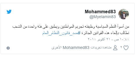 نشطاء يرفعون شعار :#لا_لقانون_النظام_العام