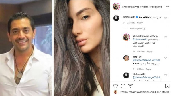 ثم قامت الإعلامية ديالا بالتعليق على الصورة بالسؤال ممازحة: "مين هيدي"، ليرد عليها فلوكس: "واحد قمر كده دخلت حياتي خلت للحياة حياة".