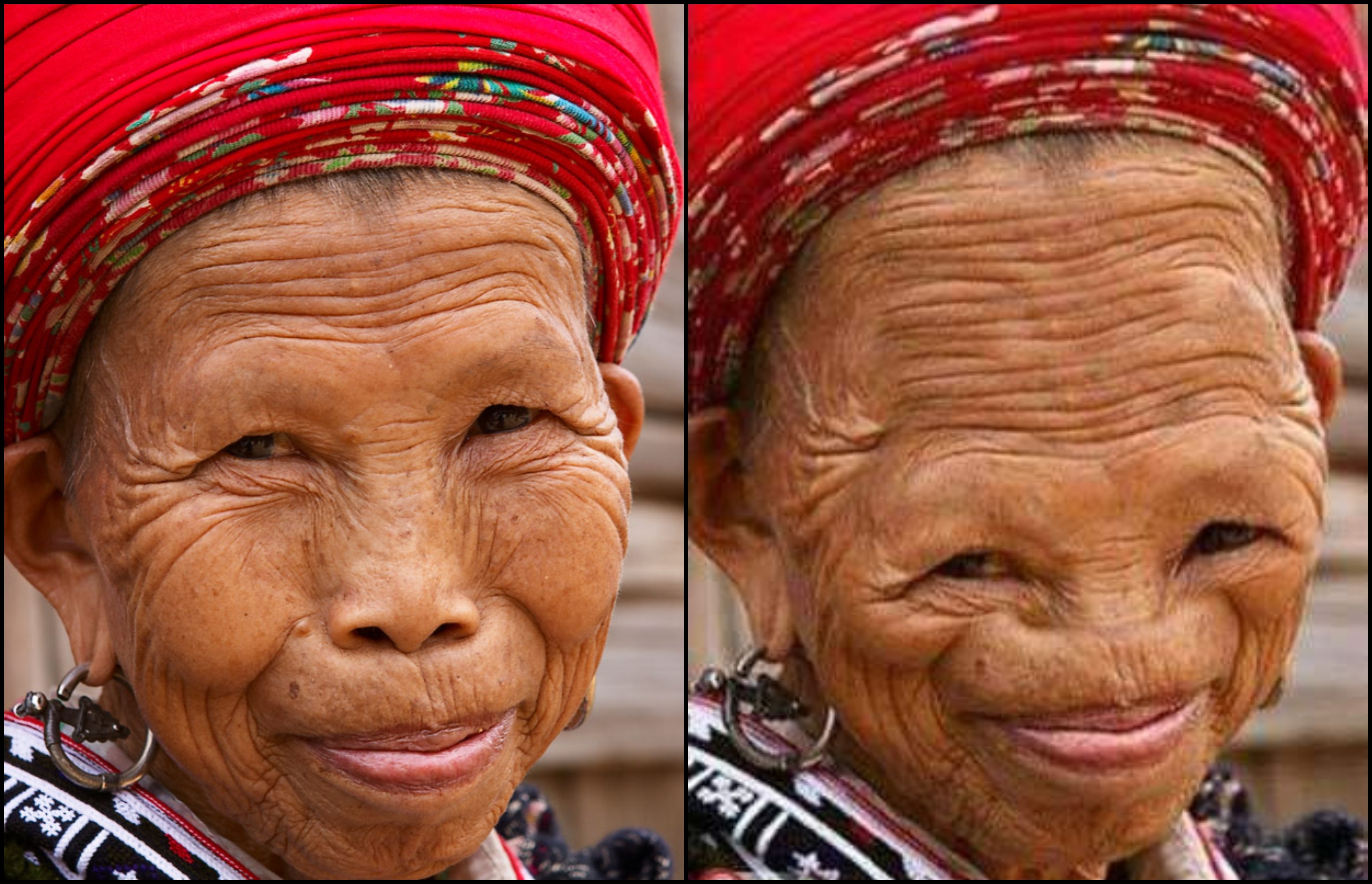 واليكم مقارنة بين الصورة المتلاعب بها (أدناه الى اليمين)، والصورة الأصلية (الى اليسار).
