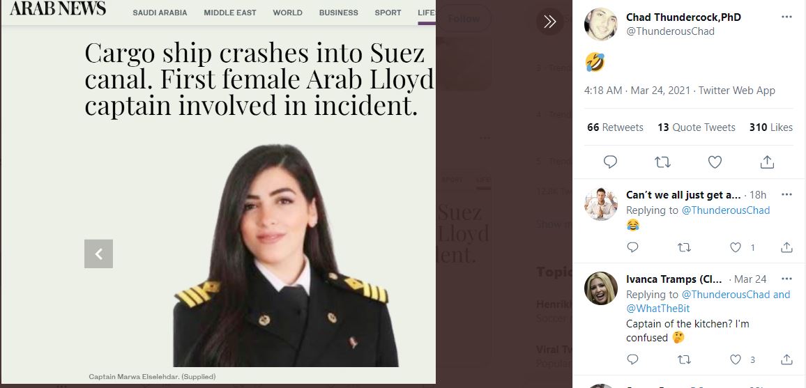 "قبطانة بحريّة مصريّة مسؤولة عن جنوح السفينة في قناة السويس"؟ إليكم الحقيق