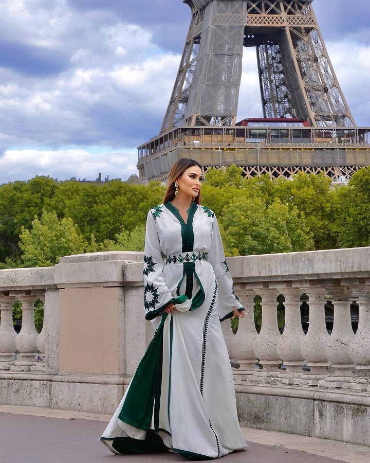 كما نشرت المصممة صورا لها من أمام برج إيفل، وهي ترتدي قفطانا، وعلقت: ”باريس تحتفل.. أغلى الناس على قلبي"، وأرفقتها بهاشتاغ ”سعد غيثة".