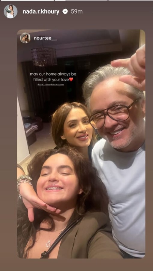 من جانبه، نشر مروان صورة عبر خاصية "الستوري" جمعته بزوجته وابنتها نور التي علقت عليه بالقول": آمل ان يبقى منزلنا ملئيا بالحب".