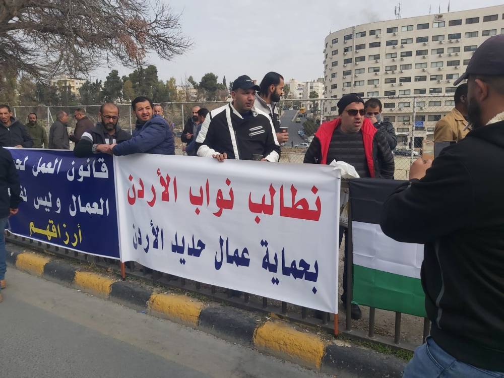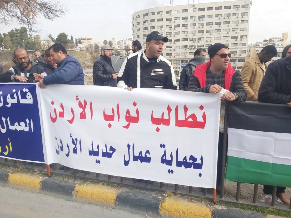 خاص - نفّذ عمال مصنع حديد الأردن اعتصاما أمام مبنى مجلس النواب، الاثنين، وذلك للمطالبة بصرف رواتبهم المتوقفة منذ (4) أشهر، ومنع أي عمليات فصل تعسّفي للعمال.