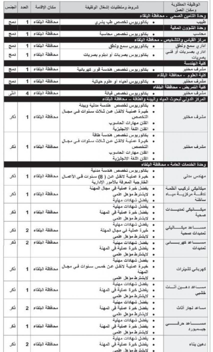 وكما أعلنت دوائر حكومية عن توفر فرص عمل شاغرة للاردنيين.