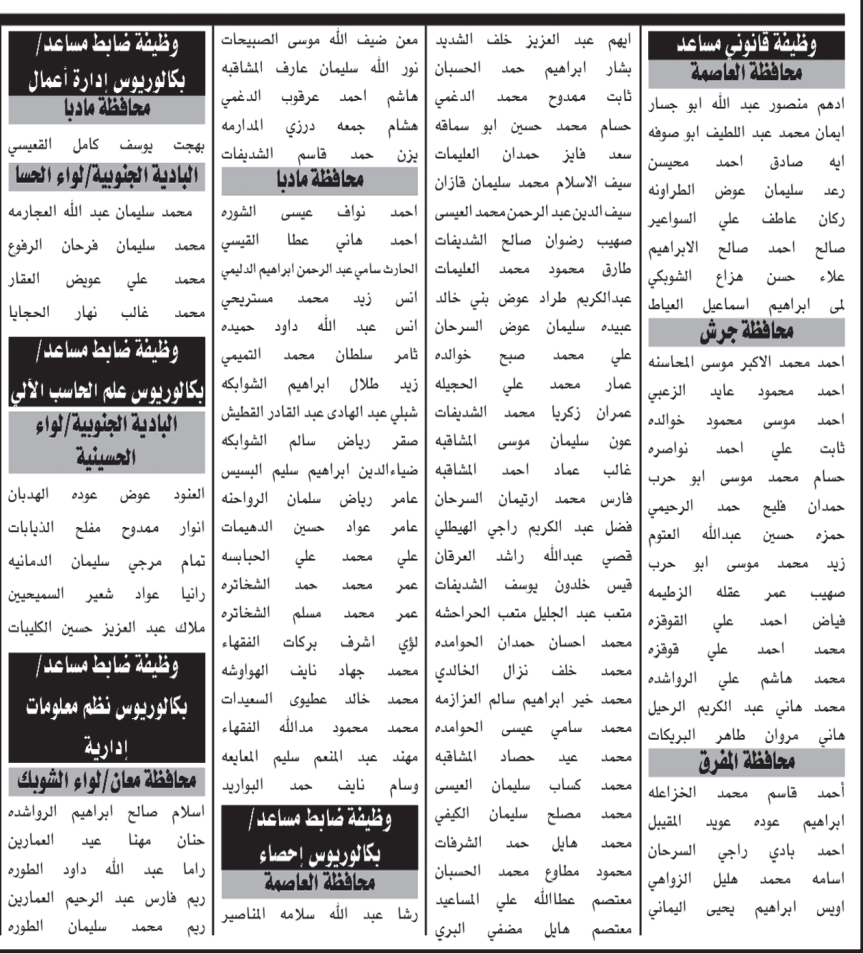 -دعت دائرة الاحوال المدنية والجوازات المرشحين المرفقة اسماءهم أدناه، الى الحضور لاجراء الامتحان التنافسي الالكتروني الذي سيعقد في مركز تقييم الكفايات في مقر هيئة الخدمة والادارة العامة .