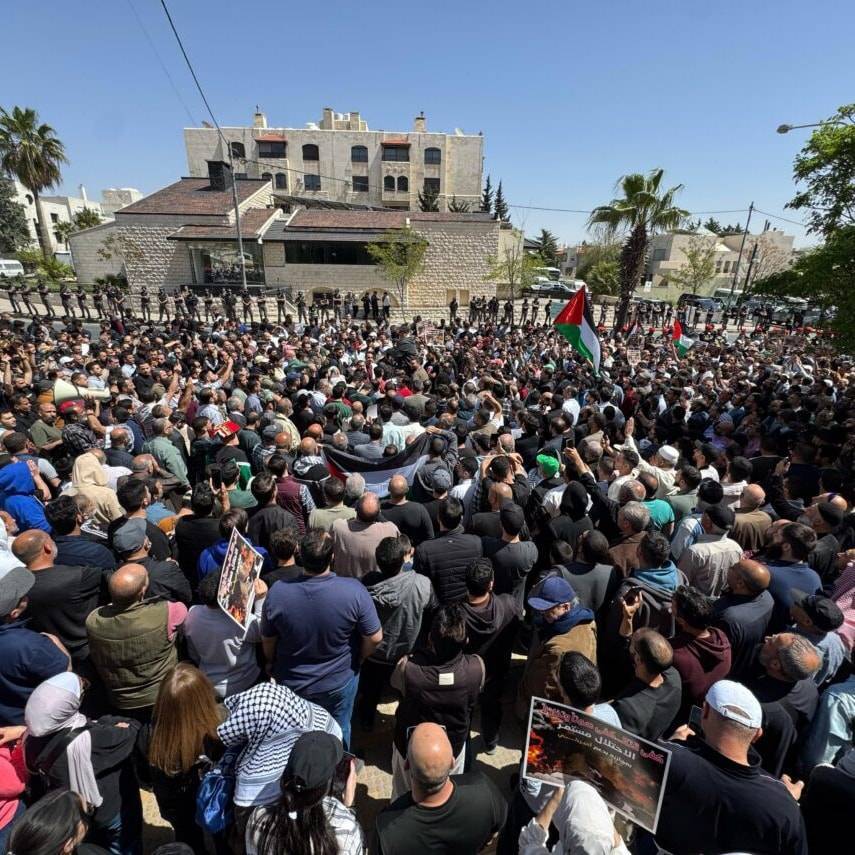 آلاف الاردنيين قرب السفارة الامريكية: يا أمتنا العربية.. فرطتوا بالقضية
