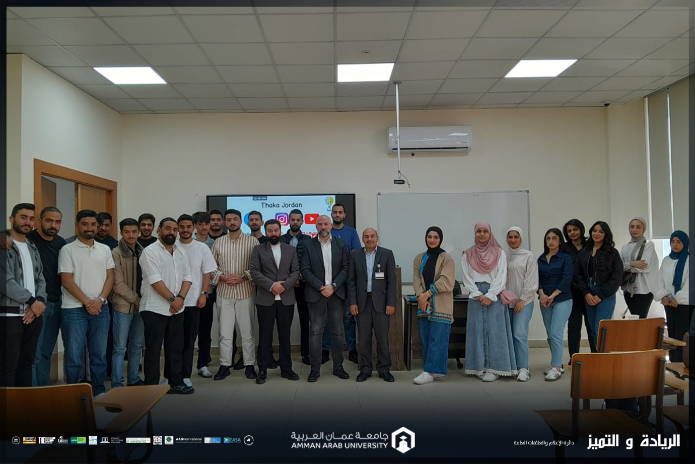 انطلاقًا من سعي جامعة عمان العربية إلى تعزيز مفاهيم الريادة والإبداع في التعليم، وضمن جهود كلية الأعمال المستمرة في تطوير معارف ومهارات الطلبة، نَفذت الكلية ورشة عمل متخصصة لطلبة قسم التسويق الرقمي ضمن مادة الإبداع وتطوير المنتجات بعنوان "دور التعليم في الإبداع والريادة".