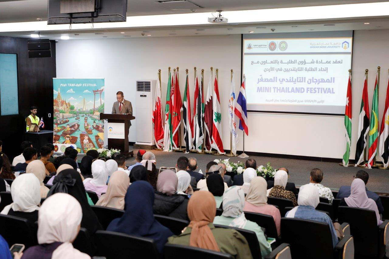 تحت رعاية الأستاذ الدكتور محمد الوديان رئيس جامعة عمان العربية وبحضور السفير التايلندي نظمت عمادة شؤون الطلبة في الجامعة وبالتعاون مع اتحاد الطلبة التايلنديين في الأردن، فعاليات "المهرجان التايلندي المصغر – Mini Thailand Festival"، بمشاركة مميزة من السفارة التايلندية في المملكة الأردنية الهاشمية.