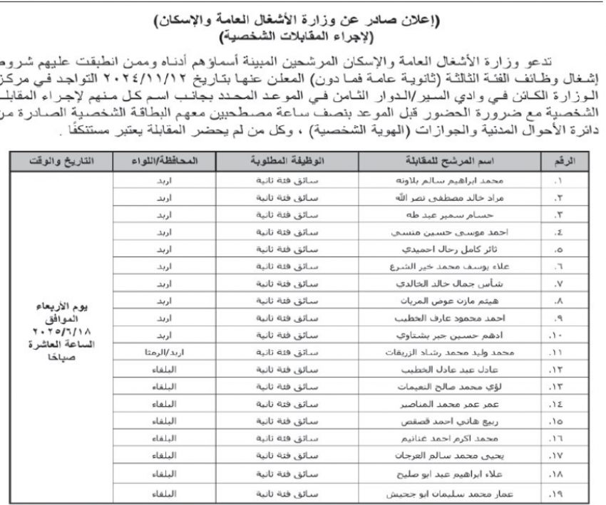 وظائف شاغرة ومدعوون لإجراء المقابلات (أسماء)