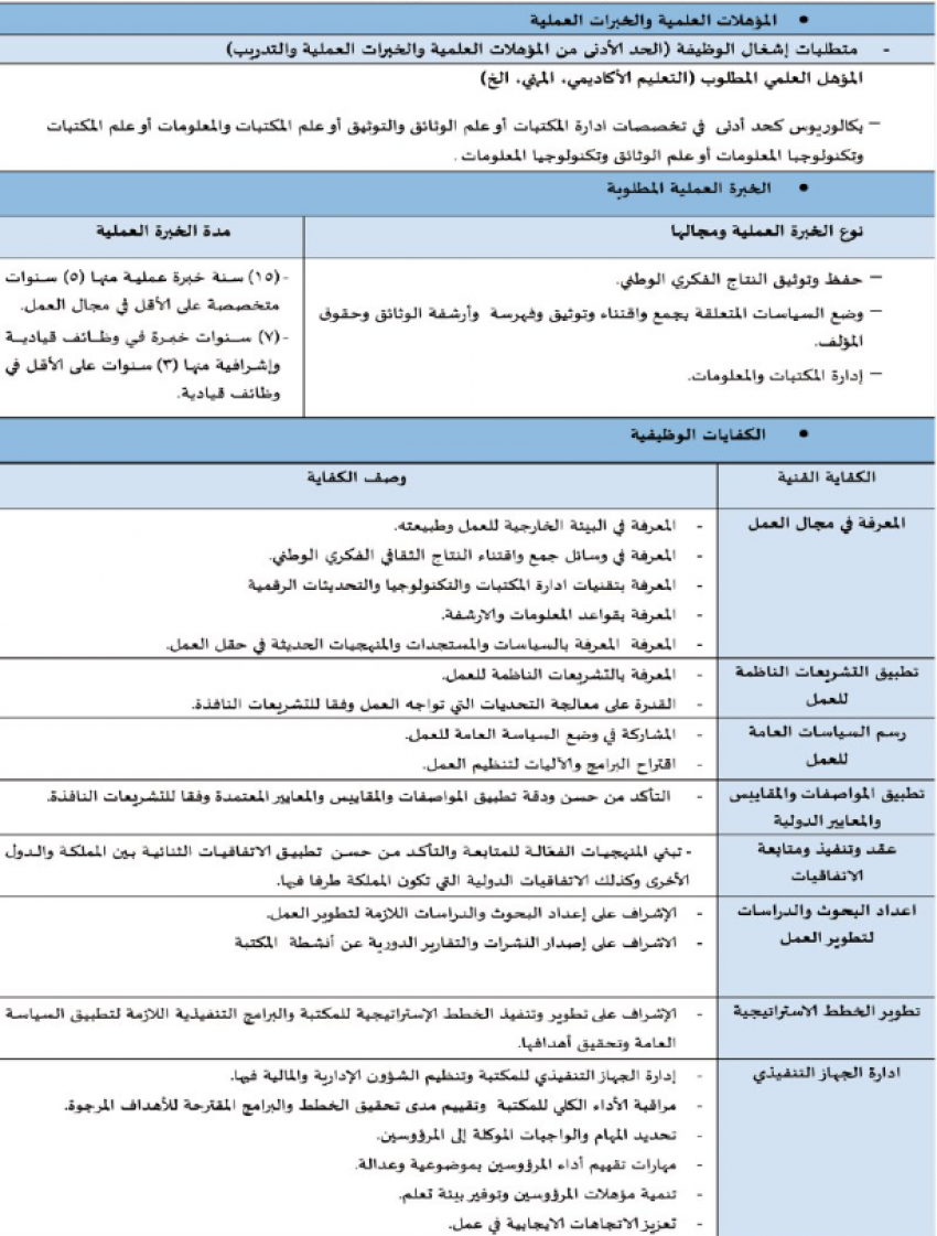 أعلنت رئاسة الوزراء عن توفر شاغر لوظيفة مدير عام دائرة المكتبة الوطنية، داعيةً من تتوافر فيه متطلبات إشغال هذه الوظيفة إلى التقدّم بطلب من خلال الرابط الالكتروني على موقع رئاسة الوزراء https://empreq.pm.gov.jo).