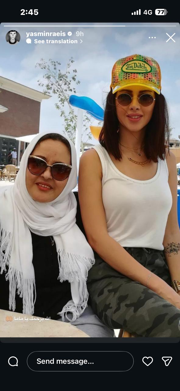 وظهرت ياسمين في الصورة من أرشيف الذكريات رفقة المرحومة والدتها، معلقةّ" الله يرحمك ياماما".