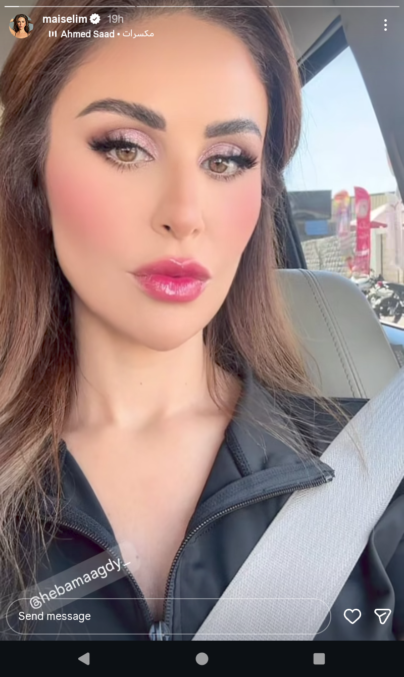 وخطفت الفنانة مي سليم أنظار جمهورها بإطلالة جذابة وميكب هادي ، لتكشف عن جمالها و رشاقتها من داخل سياراتها.