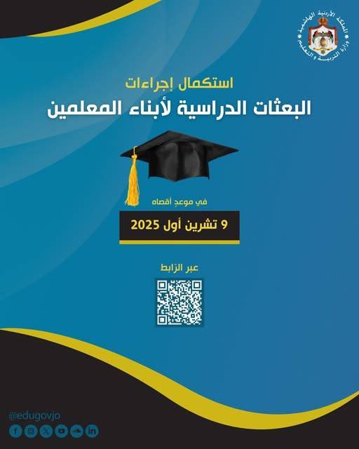 التربية تدعو الطلبة المستفيدين من مكرمة أبناء المعلمين لاستكمال إجراءات الايفاد