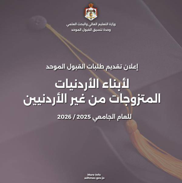 القبول الموحد تعلن بدء تقديم طلبات ابناء الأردنيات