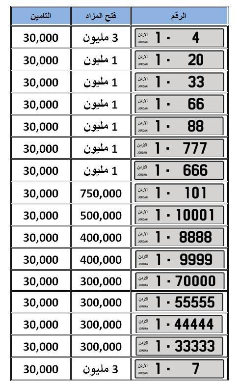 الأمن العام يطرح مجموعة من الأرقام المميزة للبيع في مزاد علني وجاهي