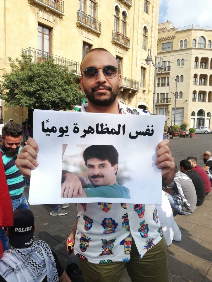 طرائف التظاهرات اللبنانية.. متظاهر "مبورد" في الذوق (صورة)