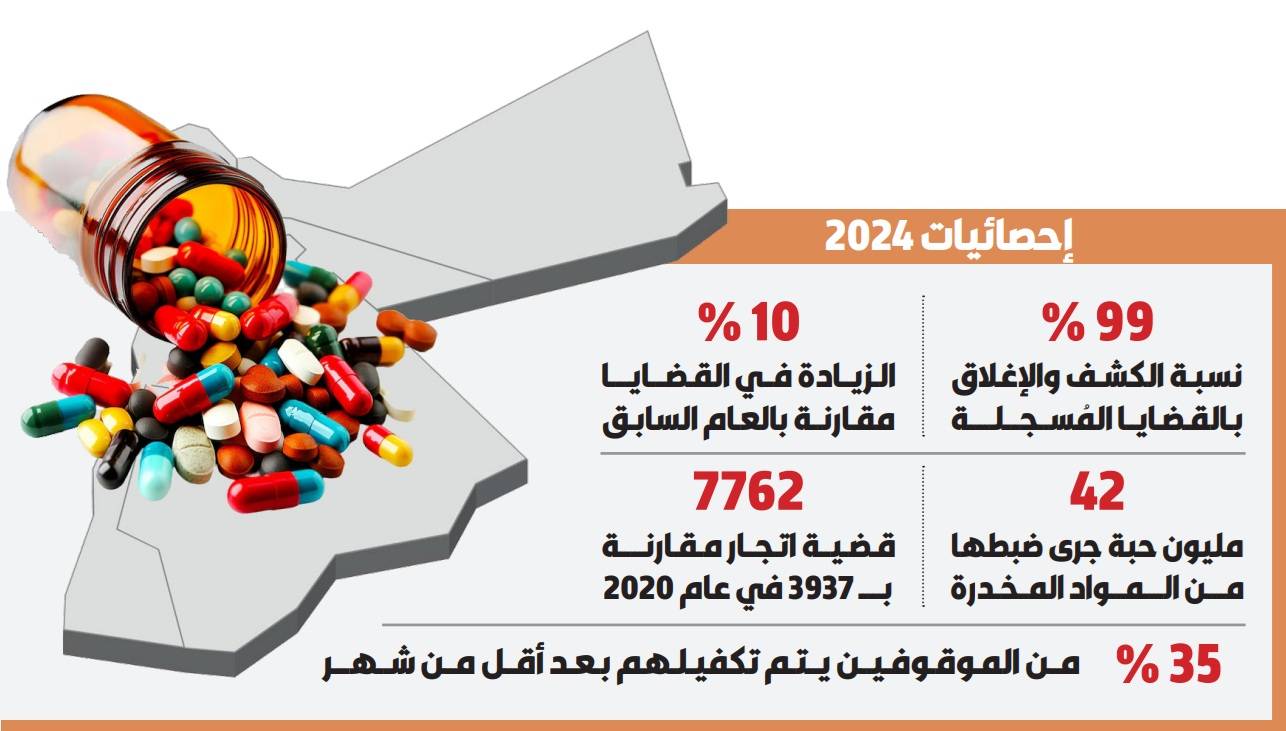 الأردن يواجه تصاعدا مقلقا في جرائم المخدرات - إنفوغرافيك