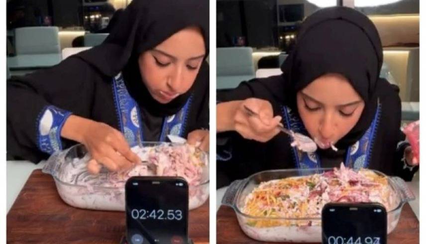 "تيك توكر" سعودية تأكل صينية فتة شاورما في 3 دقائق فقط
