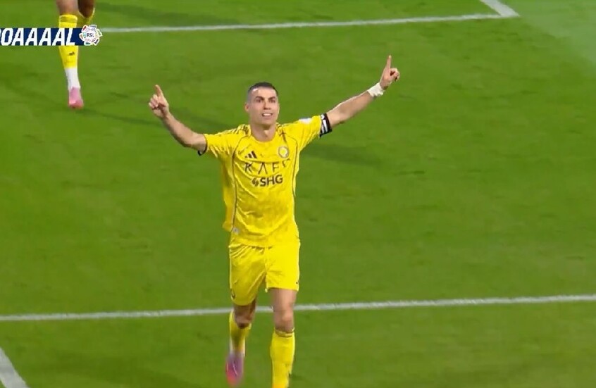 رد فعل كريستيانو رونالدو بعد هدفه في مرمى الحزم ووصوله للهدف 950 (صورة)