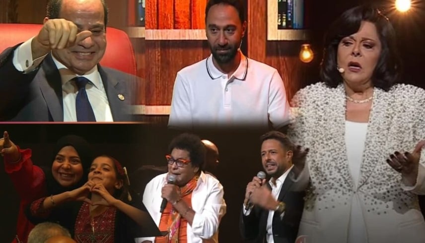 لقطة مؤثرة بين السيسي وطفلة فلسطينية في احتفالية "وطن السلام" بمشاركة نخبة من نجوم الفن